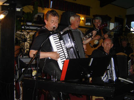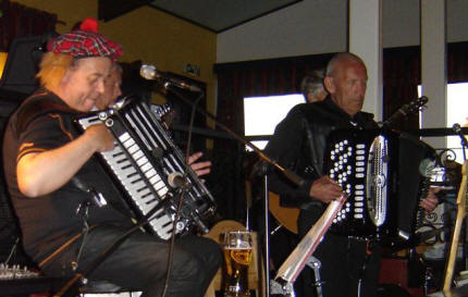 | Moelv Trekkspillklubb - musikalsk leder Svein Smeby t.v. | Vidar "trommis" Smeby sørget for gode rytmer |