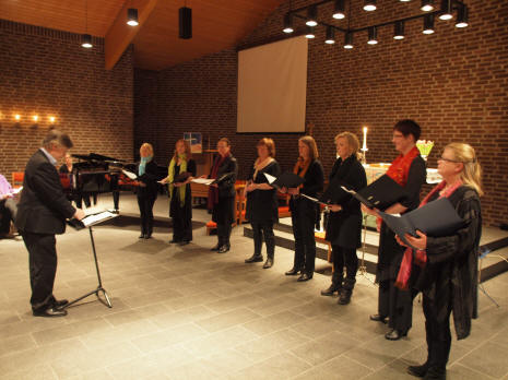 Sokneprest Anders Moen Kvalsnes kunne fortelle at det var et noe annet repertoar vi kom til å få høre denne kvelden fra RTK enn det som Hønefoss Trekkspillorkester kunne tillate seg å fremføre. Nå tror vi ikke at noen den gang heller hadde tatt skade av å høre verken gånglåt, slängpolska eller "Liebertango". "Blå salme" av Henning Sommero var dog et godt innpasset valg, og likeledes "Forgotten dreams" av Leroy Anderson. For øvrig blomstrer kulturlivet på Ringerike som aldri før, og et kulturhus er ganske nylig innviet. |