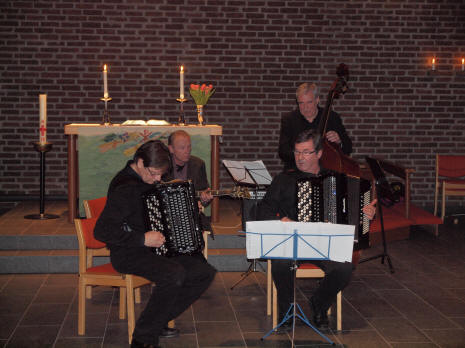 | Frank Andresen og Kjell H. Langhaug (trekkspill) med Tor Bekkelund og Per Bredesen (kontrabass) |