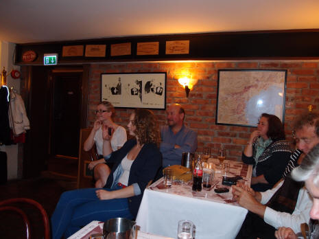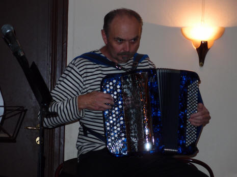 "Det er lov å prate under konserten, for det gjør folk vanligvis når jeg spiller", sa Lars-Gøran før han startet med "Les bicyclettes de Belzise" deretter etterfulgt av "pliktnummeret" "Sous le ciel de Paris" (Under Paris’ himmel). CDen inneholder både raske og rolige melodier. Men tilhørerne foretrakk tydeligvis å lytte denne kvelden. Andre smakebiter fra platen ble "Petit Fleur" og "Le bal de la marine". Deretter var det tid for en liten pause med virkelig smakebiter, dvs. ulike franske tapas- og småretter. Til andre del av konserten hadde Lars-Gøran invitert med sin gode venn og spillekamerat, Morten F. Lund. De to traff hverandre for 15 år siden på en fransk aften på Kolbotn. Siden har trubaduren Morten ofte spilt gitar med Lars-Gøran, og de har sågar spilt i Frankrike sammen - også under ett bryllup på et slott i Bordeaux. Kveldens avslutningsnummer med sang ble "Champs Elysees" som faktisk ikke er fransk slik mange tror, men derimot amerikansk.