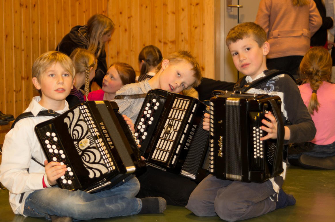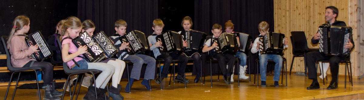 Trekkspillene er delvis Kulturskolens og Lars har også noen i eget eie som han stiller til disposisjon. Dermed kan dessverre ikke elevene øve hjemme, men får kun foreløpig spilt på skolen.