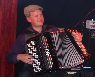 Erik Lukashaugen m/ band skal i år delta på «Volumfestivalen» på Elverum 20. juni. Torsdag 30. mai var det «Kickoff» på «Gamla» i Oslo med tre av bandene som kommer til festivalen – deriblant Lukashaugen. Henrik Hilmersen stilte sporty opp på kort varsel som vikarbassist, men trøorgelet glimret i går med sitt fravær. «Det mangler liksom litt bånn i musikken i kveld», sa Erik oppe fra scenekanten, men vi syntes det låt aldeles utmerket allikevel, vi. Erik har vokst opp i Elverum og har sterk tilknytning til Grue-Finnskog, ikke langt fra Børlis hjemsted, og han formidler dikterens tekster på en lun måte. «Mange av melodiene inneholder ikke mer enn tre grep», kunne han røpe, men disse er da til gjengjeld satt sammen til smakfulle, melodiske iørefallende arrangementer. Erik er selv gitarist og visesanger og trengte å komme i kontakt med en felespiller. Han syntes først det var tilstrekkelig med én trekkspiller, men kom via Tonje (fele) over Stein Magne som nå begge er med i bandet. Irene Tillung har også vært med i bandet på trekkspill. |