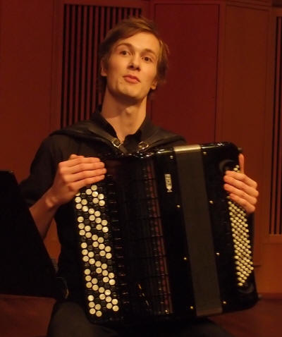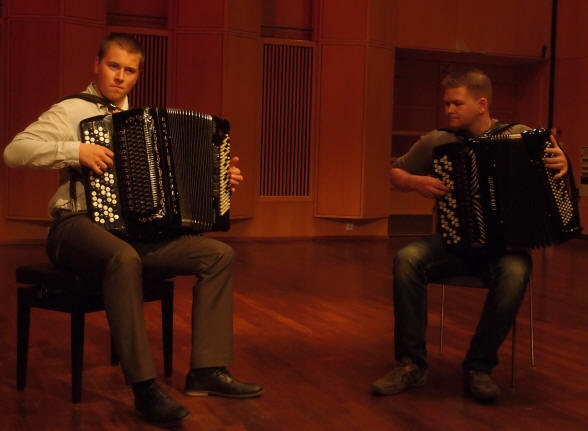 Mandag 15. april var det studentkonsert hvor et bredt spekter av det som spilles på trekkspill ble presentert. Førstemann ut var Andreas Angell som fremførte «Vinterskisser» av Anatolij Kusjakov. Andreas er på sitt andre år i studiet og ble etterfulgt av «ferskingen» Marius Berglund. Han spilte skandinavisk musikk representert ved 2. sats fra «Sonatina Piccola» Av Torbjørn Lundquist og «Spitfire» av Toralf Tollefsen.