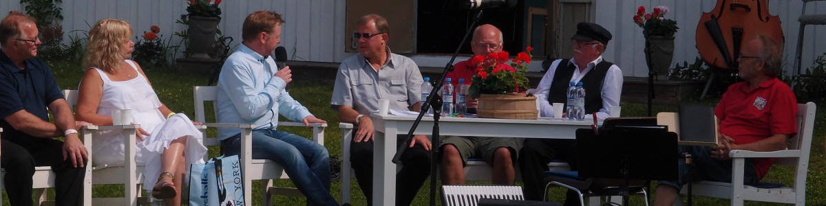 Tord Sölvesson hadde jobben som konsertens konferansier. Expo-Radion var representert ved Jan Olsson. På den hvite intervjubenken foran huset i Gropa satt forøvrig: Kenneth Andersson (leder VFD - Värmlands Dragspelsklubbars Förbund), Mats Hedman (Dragspelsexpo), Jörgen Sundeqvist, Jeanne Eriksson, Walter Eriksson jr. |