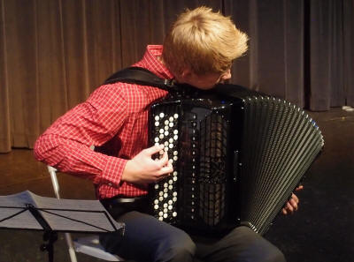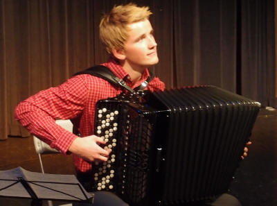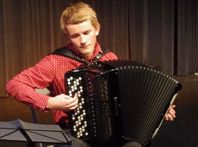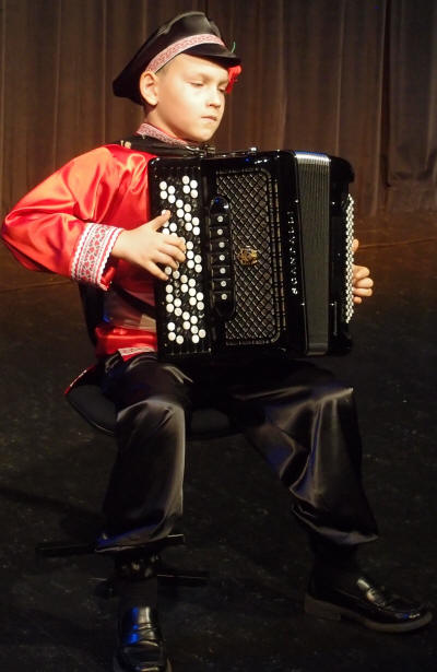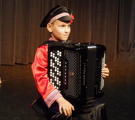 Den neste vesle karen er det vel verdt å merke seg navnet på – Mathias Rugsveen som bare er 10 år (snart 11) som her halvt norsk/halvt russisk og har spilt trekkspill siden han var 5 år. Allerede to år på rad har han vunnet klasse «Solister t.o.m. 11 år». I tillegg har han også kommet hjem med priser fra den internasjonale trekkspillkonkurransen i Pula (Kroatia), Rostov og Stockholm. Mathias spilte hele sju numre for et målløst publikum.