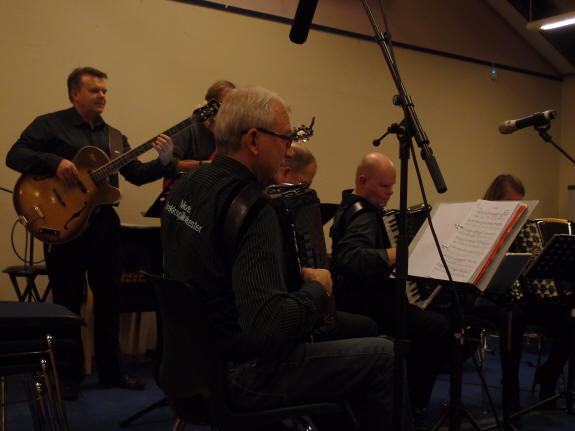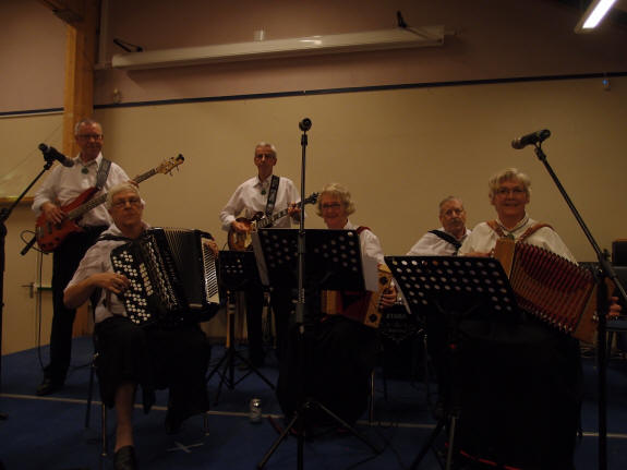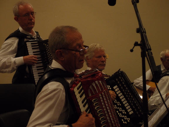| Gammeldans trenger skikkelig "komp" - her sørger Vidar Stenseth (t.v.) og Odd Kvarmestøl for å holde stødig takt | Moss Trekkspillorkester |