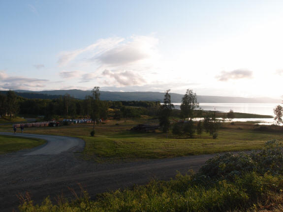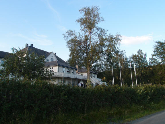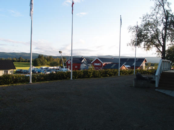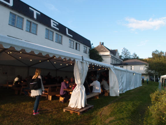 | De røde bygningene tilhører Camp Eggen | Telt med scene var satt opp for anledningen i tilknytning til hotellet |