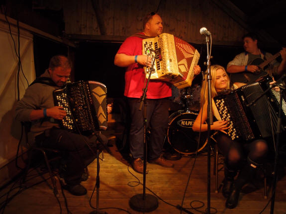 | Odd Inge Moslet (trekkspill t.h.) - bistand fra Øivind Farmen | "Ole Bjarnes" - Ole Bjarne Østby (t.h.) og Svend Aftret |