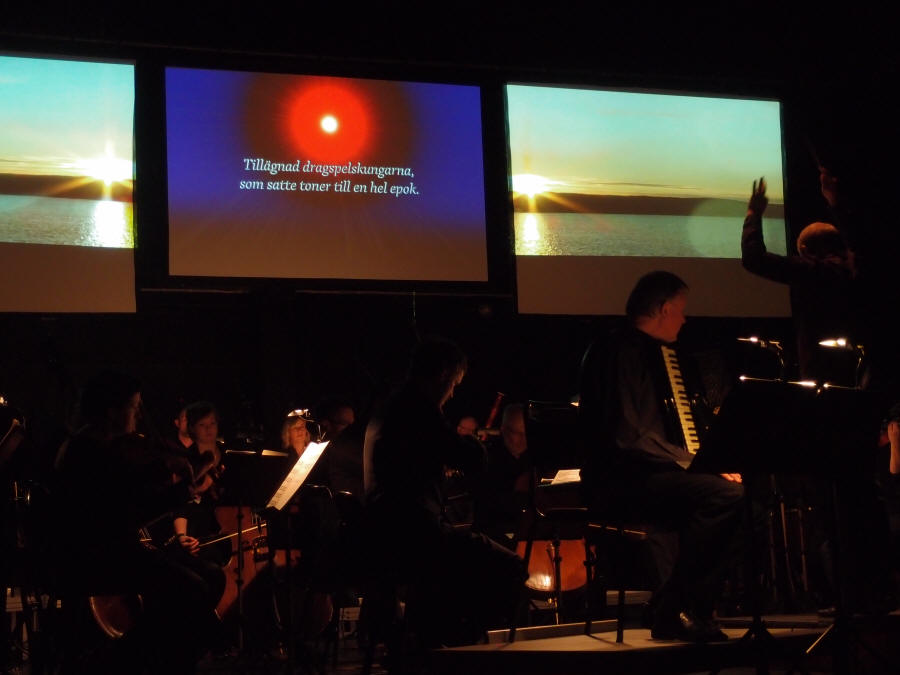 For å gjenskape atmosfæren, stemningen og musikken har den allsidige komponisten Fredrik Högberg laget en multimediakonsert for trekkspill og orkester. Jörgen Sundeqvist og Högberg har samarbeidet mye de siste årene og valget falt da naturlig på Sundeqvist som trekkspillsolist. Konserten hadde premiere på teateret i Kramfors Folkets park (Sverige) med Nordiska Kammarorkestern (NK) 22. januar 2015. NK kan i år feire 25 års-jubileum, og kveldens dirigent var Niklas Willén, som for øvrig var orkesterets (den gang Sundsvalls Kammarorkester) første sjefsdirigent. Willén er i dag bosatt i Tyskland og har hatt en fremgangsrik karriere. Den 23. januar kunne man høre konserten i Sundsvall (Sverige) som en del av Kulturfestivalen der, som i sin tur er en del av Umeå Kulturhovedstad 2014. I anledning sitt jubileum åpnet NK begge dagene med Paris-symfonien av Wolfgang Amadeus Mozart og Symfoni nr. 1 av Ludwig van Beethoven. |
