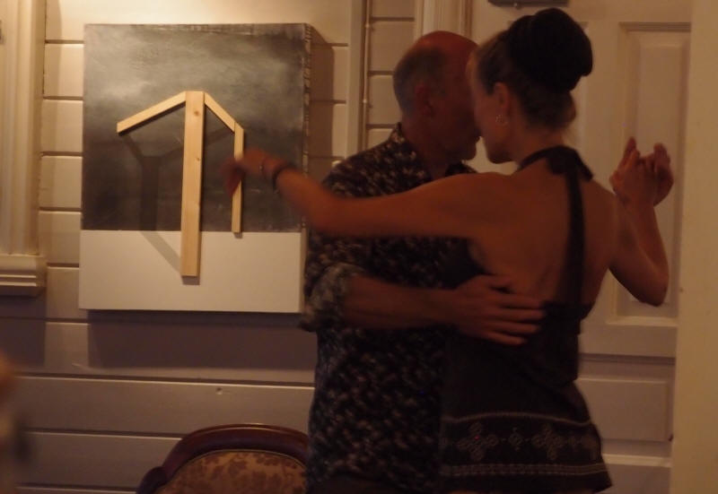 | Det fantes også tangodansere blant publikum som ikke kunne la være å prøve noen trinn ute på gangen.. |