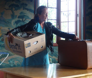| Elise (Inger) klargjør kofferten for å forlate barndomshjemmet og flytte til kjæresten. Smarttelefonen på bordet som teaterrekvisitt vitner om en handling i tiden... |