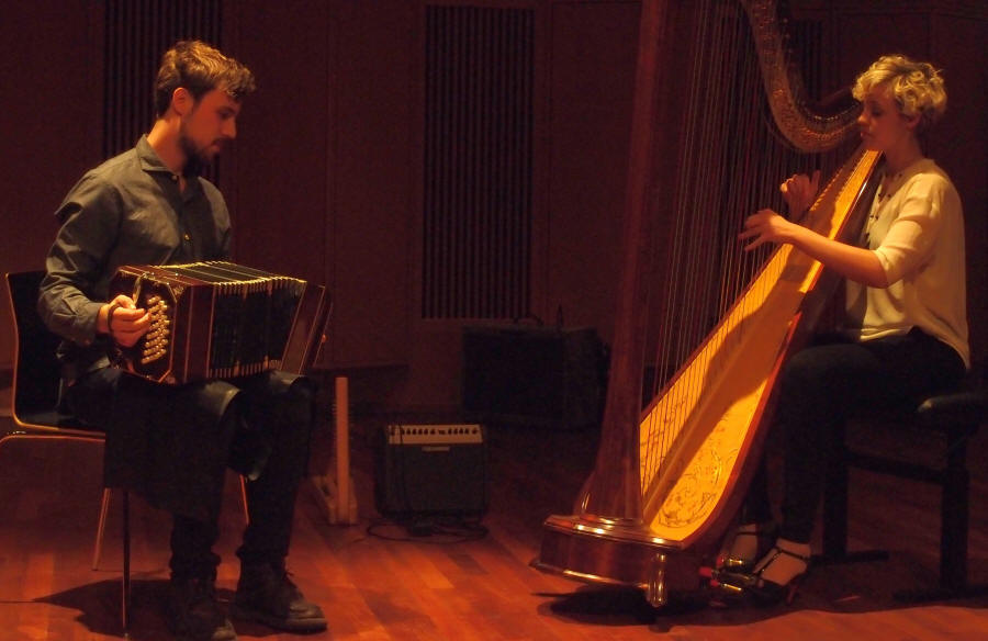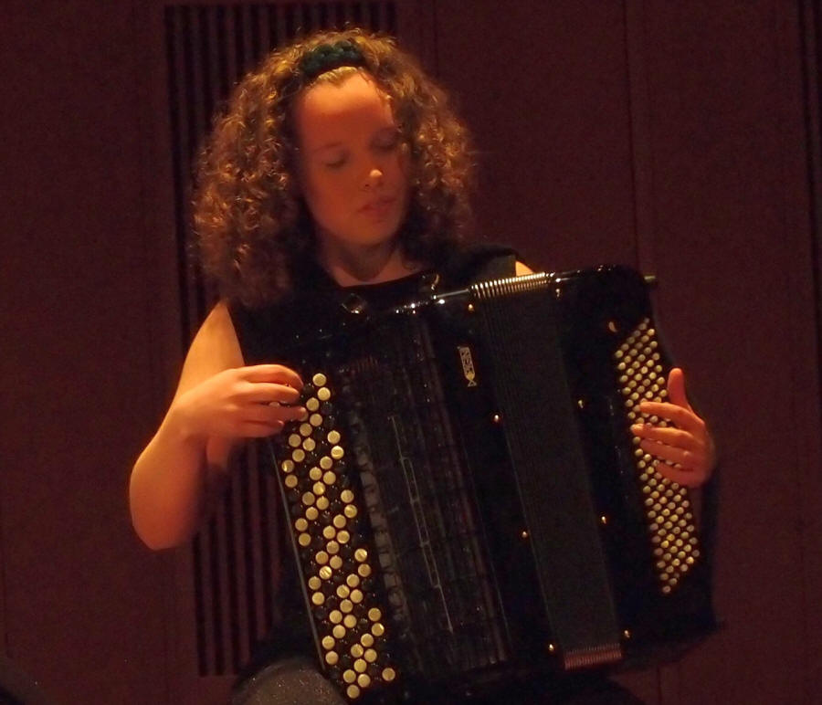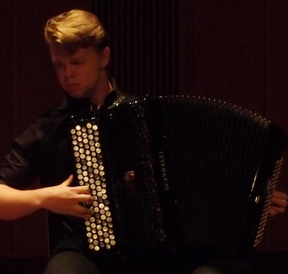 | Åsbjørg Ryeng - J.S. Bach (1685-1750): Contrapunkctus 12 fra Kunst der Fuge, BWV1080. Denne tostemte fugen var meget iørefallende og falt godt i smak hos publikum. | Andreas Angell - Edison Denisov (1929-1996): From Dusk to Light (1996).Denisov har komponert kun dette ene stykket for trekkspill og var forøvrig også utdannet matematiker. Han har benyttet en en spesiell komposisjonsteknikk hvor mørke og lyse toner i samme register møtes. En mystisk og gåtefull komposisjon. |