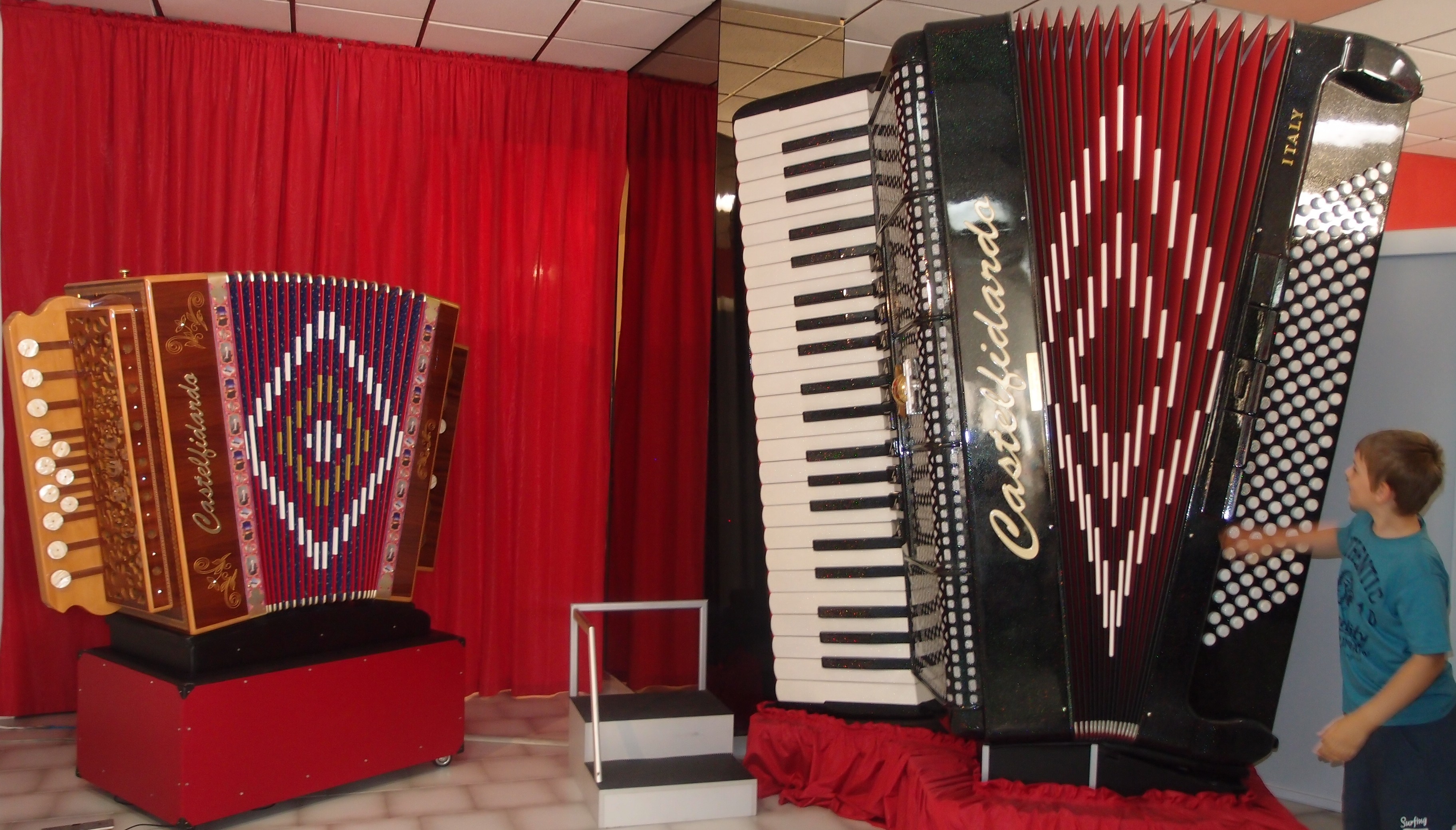 | Mathias Rugsveen var eneste norske deltaker i kategori A Klassisk solo opp til 12 år. Han endte opp på en flott 2. plass. Mellom øving og konkurranse sjekket han ut verdens største trekkspill |