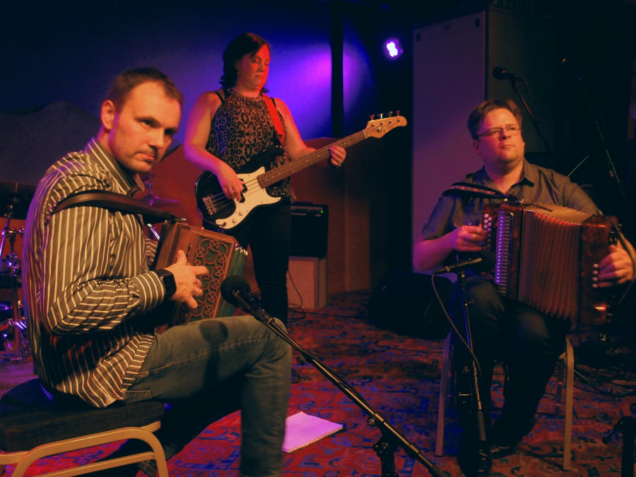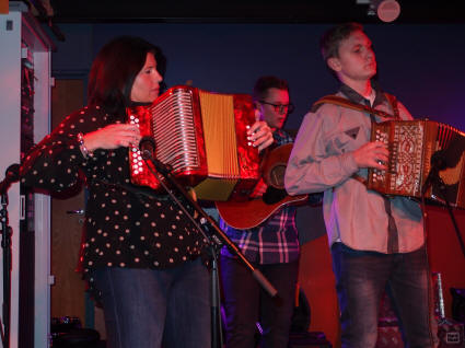 | Tørstad & Albrigtsens orkester - f.v. på torader Sondre Albrigtsen Eikrehagen, Janet Albrigtsen og Tom Kjetil Tørstad |