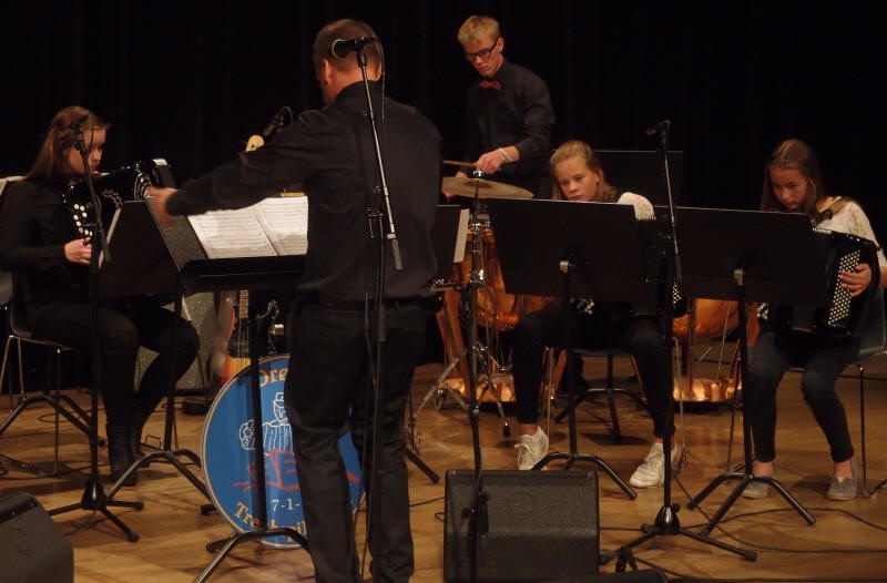 Jubilanten Drøbak TK åpnet selv konserten, men overlot så scenen til en av gjestene - Ås trekkspillorkester. Disse ledes av Stian Norgård Aase. I motsetning til Drøbak TK er denne gjengen bestående av kun unge trekkspillere, og vi fikk høre også tre små duetter av de to yngste i orkesteret. De avsluttet sin seanse med «Irsk suite» som de skal framføre i Praha i november under en internasjonal konkurranse. Det låt riktig så bra og autentisk irsk med innlånt perkusjonist på pauker fra Norges Musikkhøgskole. |