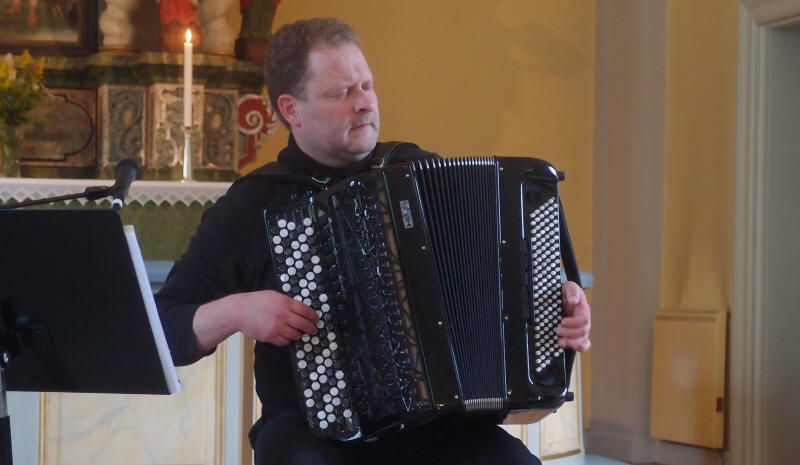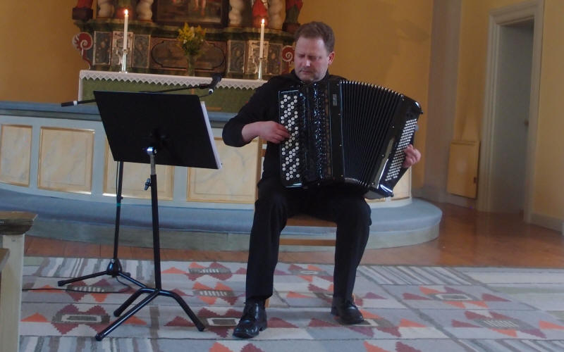 Kvelden ble avsluttet med «Figaros bryllup» fra «The Barber of Seville». De rundt 50 fremmøtte så ut til å ha hatt en hyggelig konsertstund i Högeruds kyrka, men vi kunne nok ha ønsket oss noe mer dynamikk i fremførelsene. Repertoarvalget kan det herske mange meninger om, men det finnes mye nyere Skandinavisk musikk for trekkspill med melodibass, f.eks. Torbjörn Lundquist og Ole Schmidt, som gjør seg vel så godt som gamle ”klassikere” i transkribert versjon. Det er sjelden det blir helt bra, og det kan være sunt at publikum blir kjent med noe nytt. Turneen fortsetter videre i Sverige. Følg med på hans Facebook-side. |