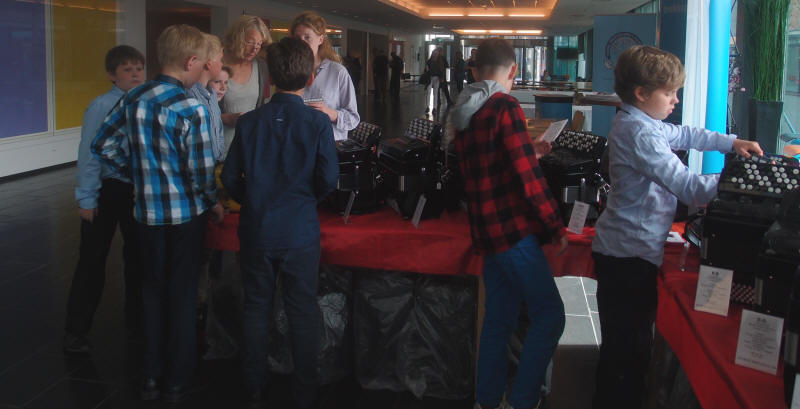| Avisen Budstikka var på plass og intervjuet her de unge fra Junior-fisarmoniske |