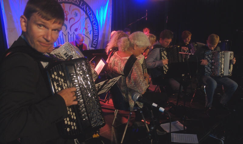 | Sondre Albrigtsen - vinner av G5 - Solist gammeldans junior (108 poeng) og S6 - Solist durspill f.o.m. 15 år (113 poeng) - gjorde en iherdig innsats med sitt toraderspill Superfinalen i gammeldans, men det var ganske umulig å nå helt til topps med motkandidater som Malm Trekkspillklubb og Åtgaum. |