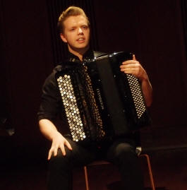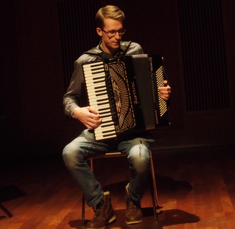 Trekkspillstudentene på Norges Musikkhøgskole (NMH), dvs. de som spiller på et instrument med belg på midten, inviterte igjen til konsert tirsdag 12. april 2016 i Levinsalen som en del av «Tirsdagsserien». Dette er studenter av Erik Bergene og Frode Haltli som begge underviser ved NMH. Det ble et variert program som spente fra folkemusikk og improvisasjon, via barokkmusikk til originalskrevet samtidsmusikk for trekkspill. Spennvidden viser tydelig at trekkspill er et «tøyelig begrep» slik Erik Bergene uttrykte det ved introduksjon av konserten. Intensjonen er å ha slike konserter en gang i halvåret. |