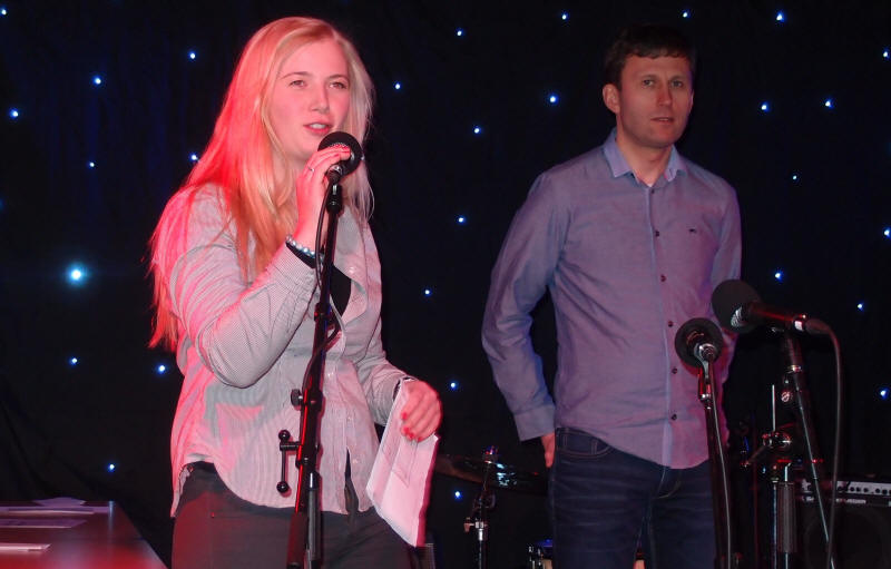 | Konferansier under DM: Caroline Nythun-Bøe. NTLs representant t.h.: Thorleif Westby |