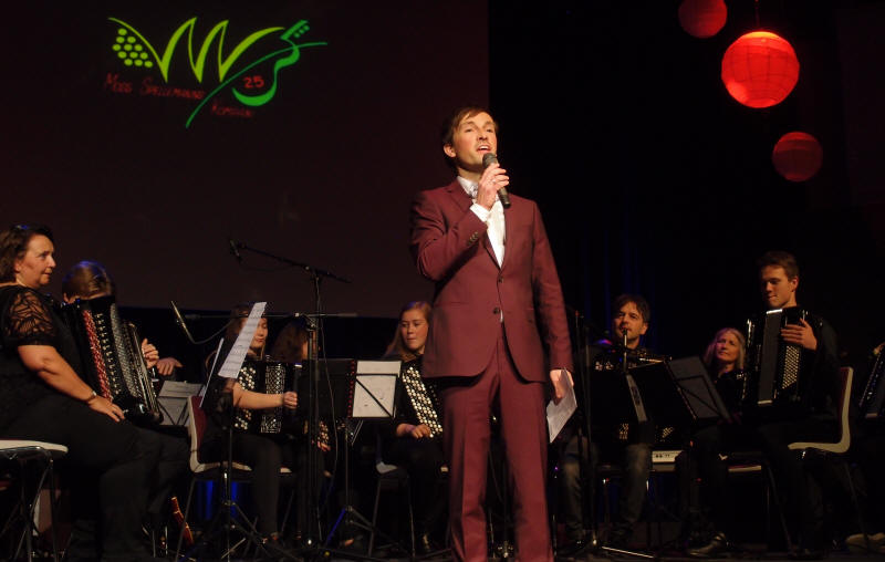 | Per Emil Grimstad - konferansier - ledet oss gjennom jubileumskonserten |