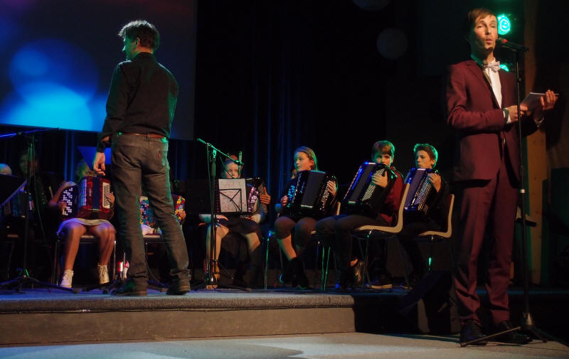 Otto er den som alltid bobler over av ideer. De mest ville blir stoppet av Heidi hjemme i stua, mens styret vurderer videre og gir klarsignal. I år gjennomførte de ‘Tour de Accordeon’ hvor NM på trekkspill i Skien var 10. og siste etappe. Og så har de fått lurt med seg en fyr fra Sortland - Skjalg Bjørstad. Han er musiker og komponist og skreddersyr på bestilling verk til spellemannskompaniet. Støtte fra Sparebankstiftelsen DnB og andre sponsorer har gjort det mulig med både CD-innspilling, nytt repertoar og seminarer. Sparebankstiftelsen hadde også sponset billetter og mat til barn og ungdom under jubileumskonserten. Den nyeste CDen, ‘Mossbarock’, er forresten så fersk at den kom levert på døra dagen før, og er sågar et dobbeltalbum. |