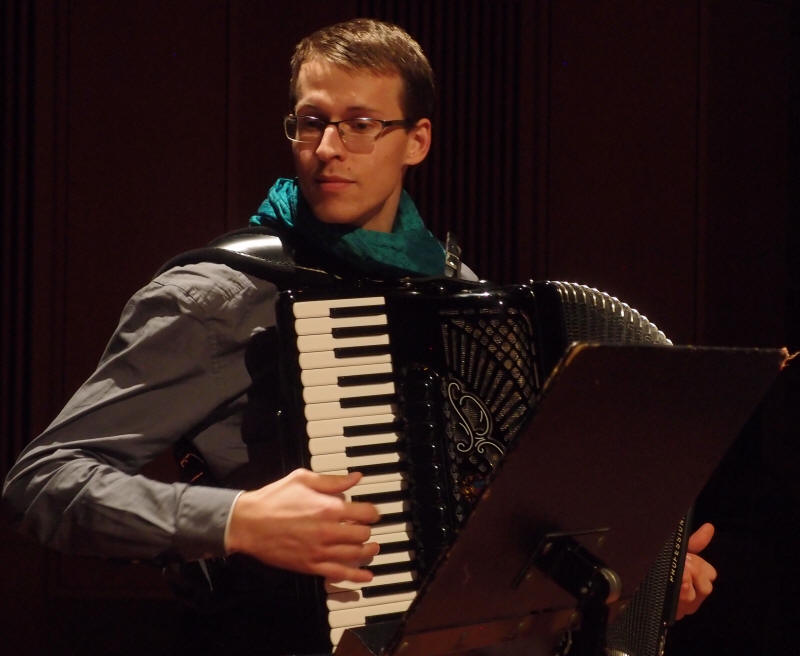 Trekkspillstudentene på Norges Musikkhøgskole (NMH) presenterte nok en gang musikk innenfor ulike sjangere som klassisk, samtidsmusikk, folkemusikk, tango, jazz og Balkanmusikk - alt spilt på instrumenter med belg på midten - også i samspill med andre instrumenter. Publikum ble også presentert for Andreas Borregaard fra Danmark som har fått stilling som universitetslektor ved NMH, hvor han har akkordeon som fagområde. |