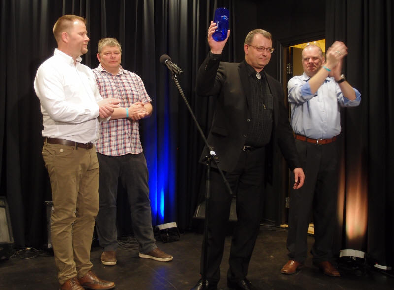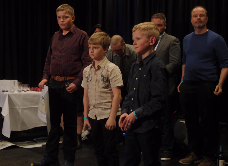 | Durspill senior - et spennende øyeblikk med de 3 beste på scenen før vinneren utropes. F.v.: Øystein Nicolaisen, Mads Erik Odde og Geir Marius Thorud |