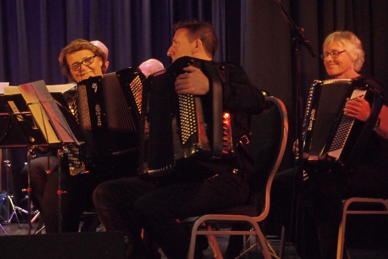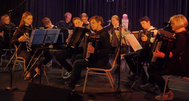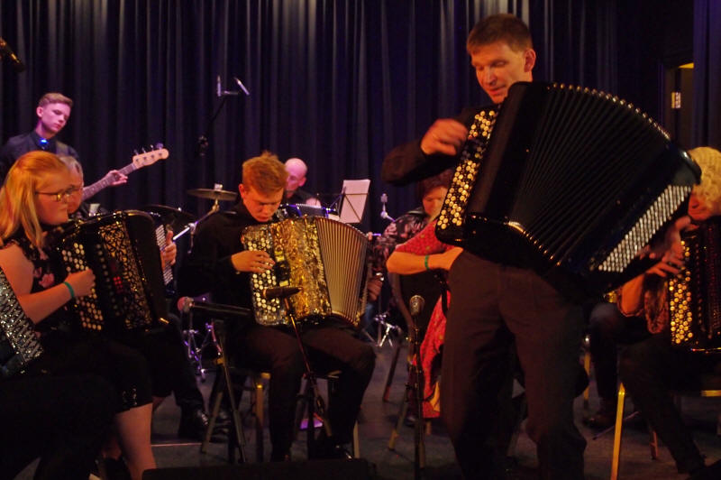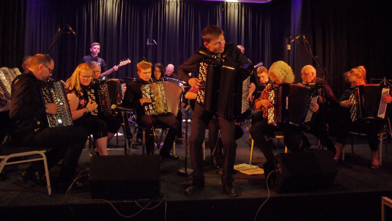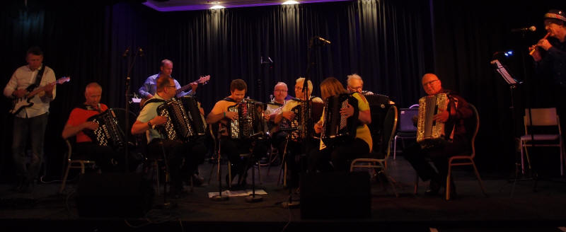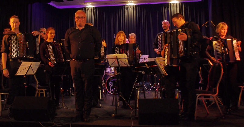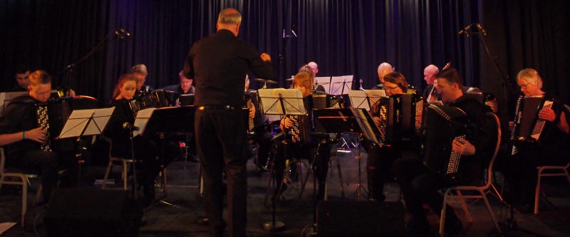 | Malm Trekkspillklubb - musikalsk leder Svein Kåre Haugen foran |
