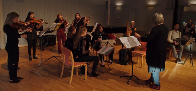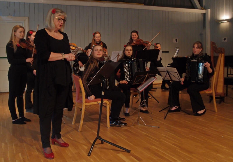 | Corazón tangoorkester - til venstre foran: instruktør Brith Laila Ouff og til høyre bak: Lena Rist-Larsen |