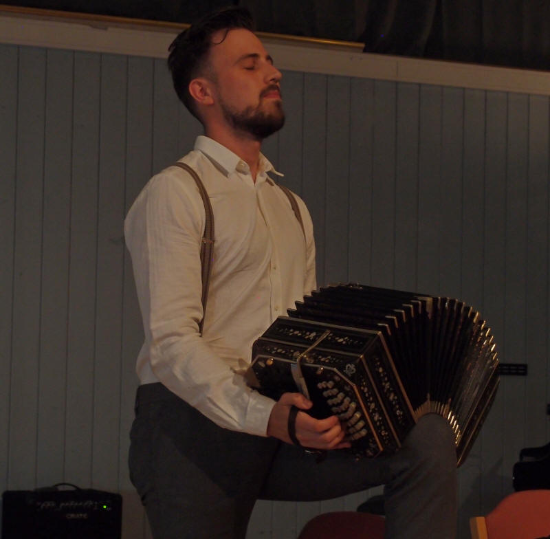 Søndag 31.03.19 var det 'tangoaften' på Grønland i Oslo. Corazón tangoorkester, som består av meget dyktige elever fra kulturskolene i Bærum og Oslo, inviterte til konsert etter å ha vært instruert og inspirert i to dager på seminar med duoen 'Julie & Andreas'. Duoen består av søskenparet Julie Rokseth på harpe og Andreas Rokseth på bandoneon. Besetningen er helt unik på verdensbasis og kombinasjonen av instrumentene skaper en magisk og vakker atmosfære. |