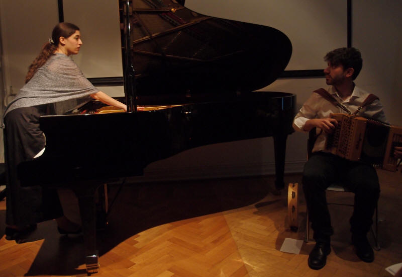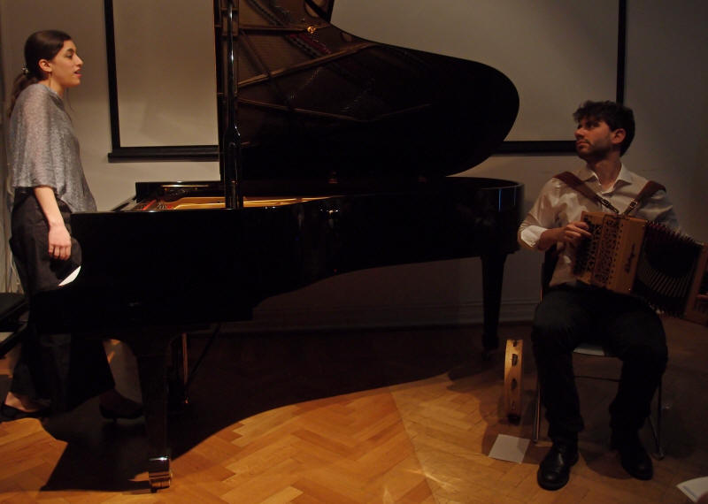 Det Italienske Kulturinstitutt i Oslo inviterer stadig til kulturelle kvelder i sine hyggelige lokaler noen kvartaler bak Slottet, det være seg forfattermøter eller musikalske innslag med f.eks. piano, fiolin og fløyte. Mandag 1. april var det klassisk piano og torader med 'Duoende' fra Italia som stod på programmet, og det var slett ingen aprilspøk. Duoen består av Giulia Grassi på klassisk piano og Francesco Berrafato på torader, og ble grunnlagt i 2016. Ensemblet har spilt i en rekke lokaler og på festivaler både i Italia og UK. Gjennom både egne komposisjoner samt nytolkning og egne arrangementer av italiensk tradisjonsmusikk og klassiske musikkverker, skaper 'Duoende' en ny klangverden og en dialog mellom ulike sjangre. Både instrumental og vokal improvisasjon er viktig i deres komposisjoner og 'live' fremførelser, noe publikum fikk oppleve og erfare denne kvelden på Kulturinstituttet. Dagen etter konserten bar det rett i studio på Universitetet i Agder hvor de skulle spille inn sitt første album. Vi ønsker dem lykke til med lydfestingen og håper å få høre dem igjen ved en senere anledning. Og ja, - de bekreftet at de er mer enn musikalske venner og trives godt i daglig selskap. |
