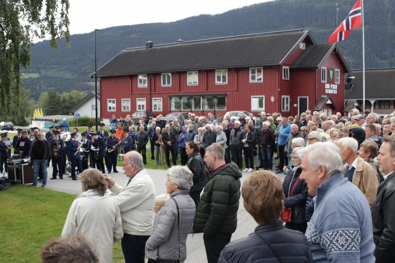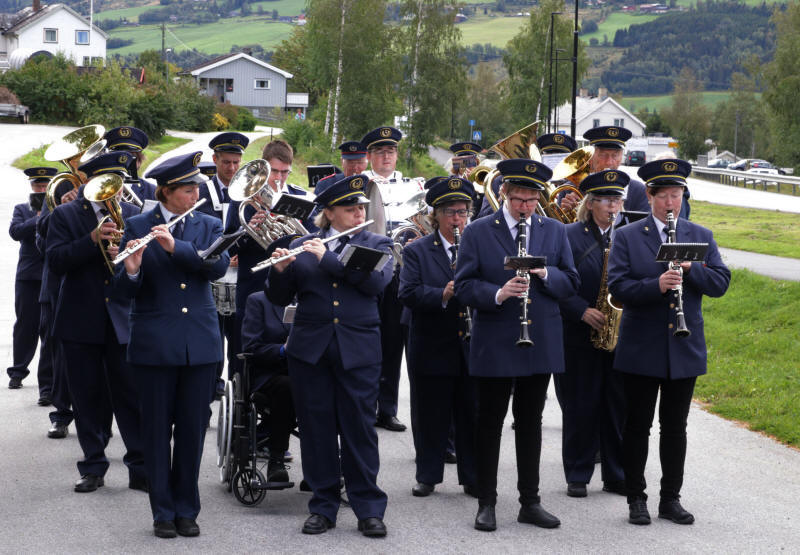 | Hundorp musikklag ved minnesteinen spilte en marsj som var laget til dem i 1950 |
