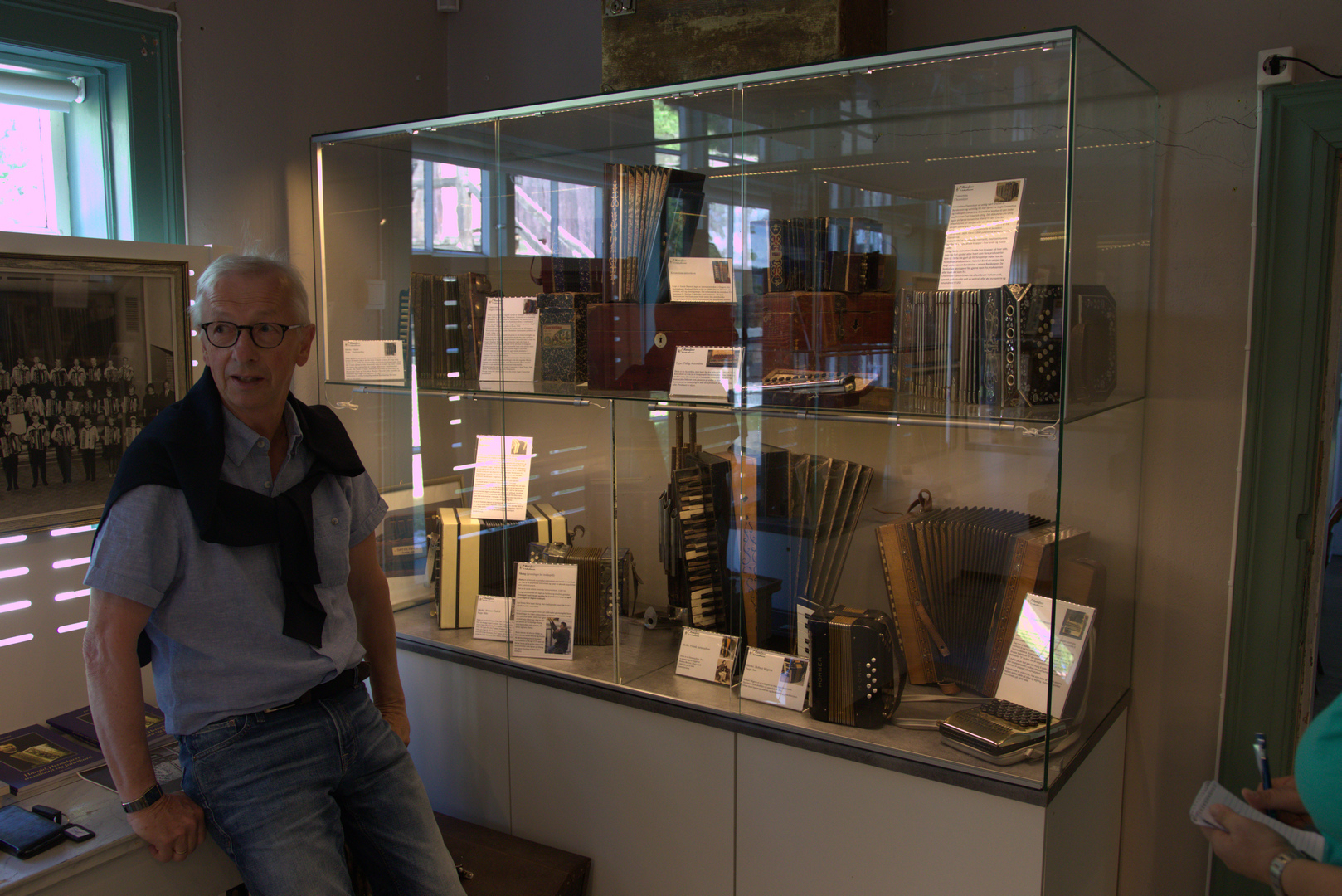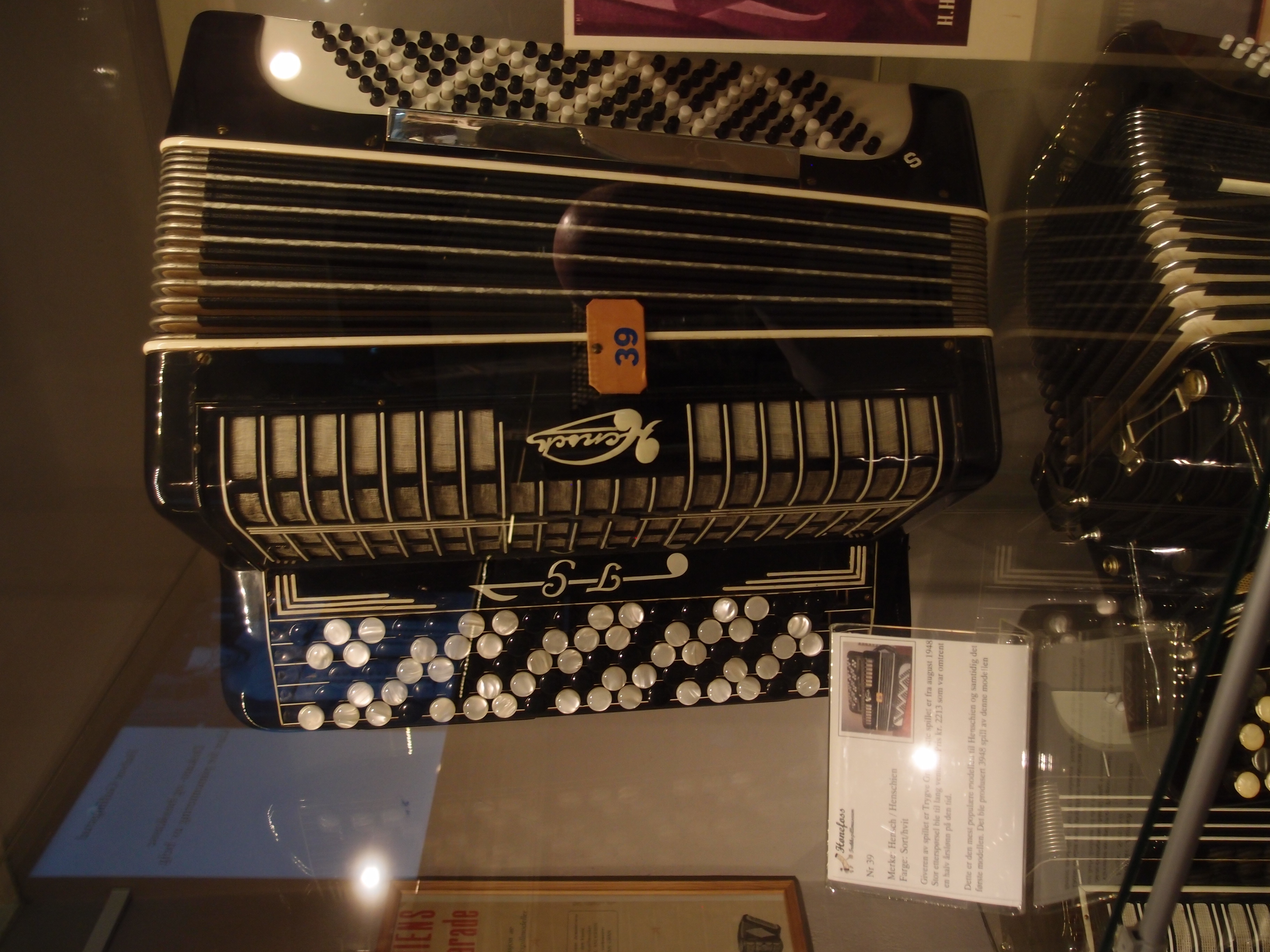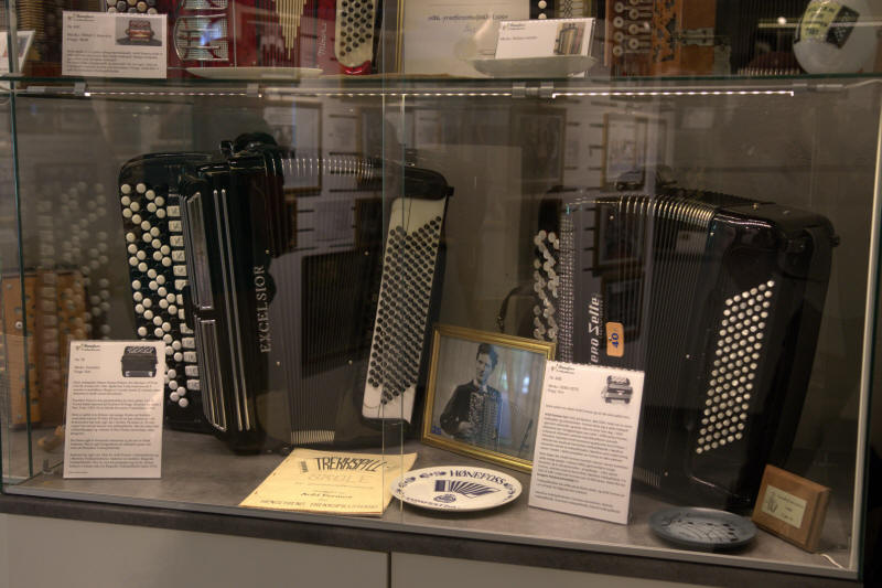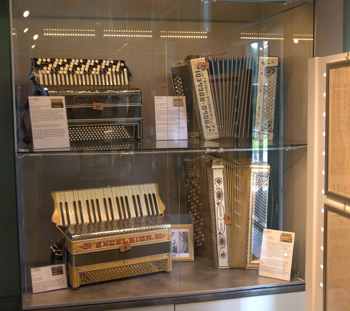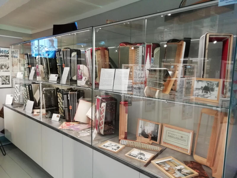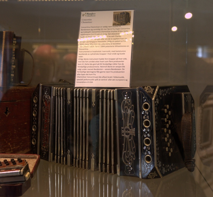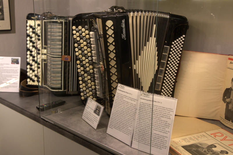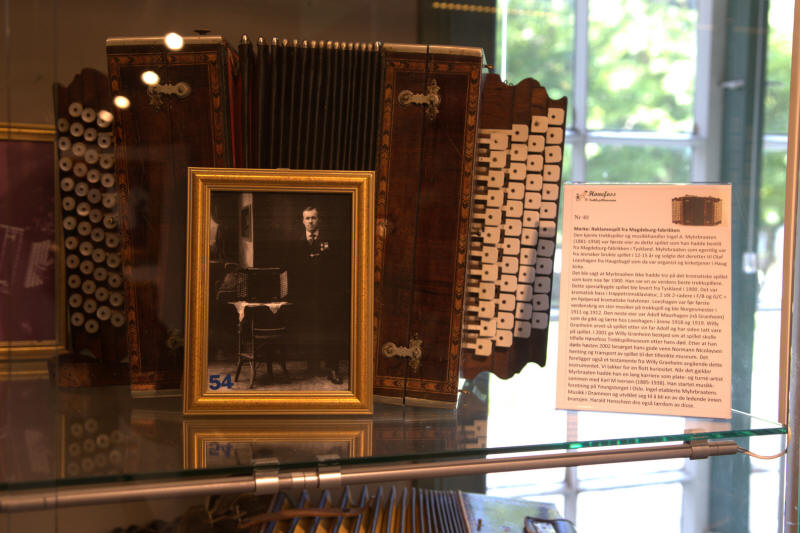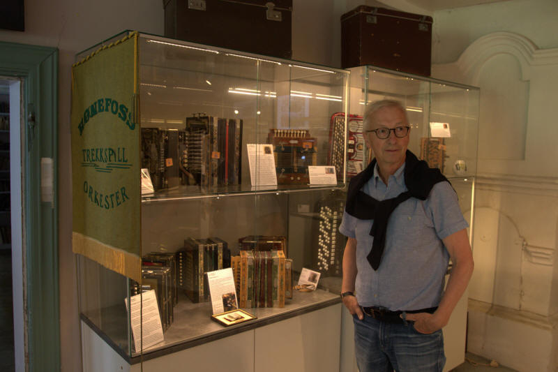 I begynnelsen av juli tok vi allikevel kontakt med Steinar Eriksen. Trekkspillmuseet er organisert som en egen forening hvor han er styrets leder, og vi spurte om det var mulig å få en privat omvisning. Museet var tidligere lokalisert ved Kulturhuset i Hønefoss, men ble for et par år siden flyttet og har nå en egen fløy på Ringerikes museum som var tidligere Norderhov gamle prestegård. Imidlertid viser det seg at fløyen allerede er for liten, for Hønefoss Trekkspillmuseum har mye interessant å vise frem. De håper å få innvilget mere plass i fremtiden, og det ligger godt an til det ettersom trekkspillmuseet har den mest besøkte utstillingen på hele museet. |