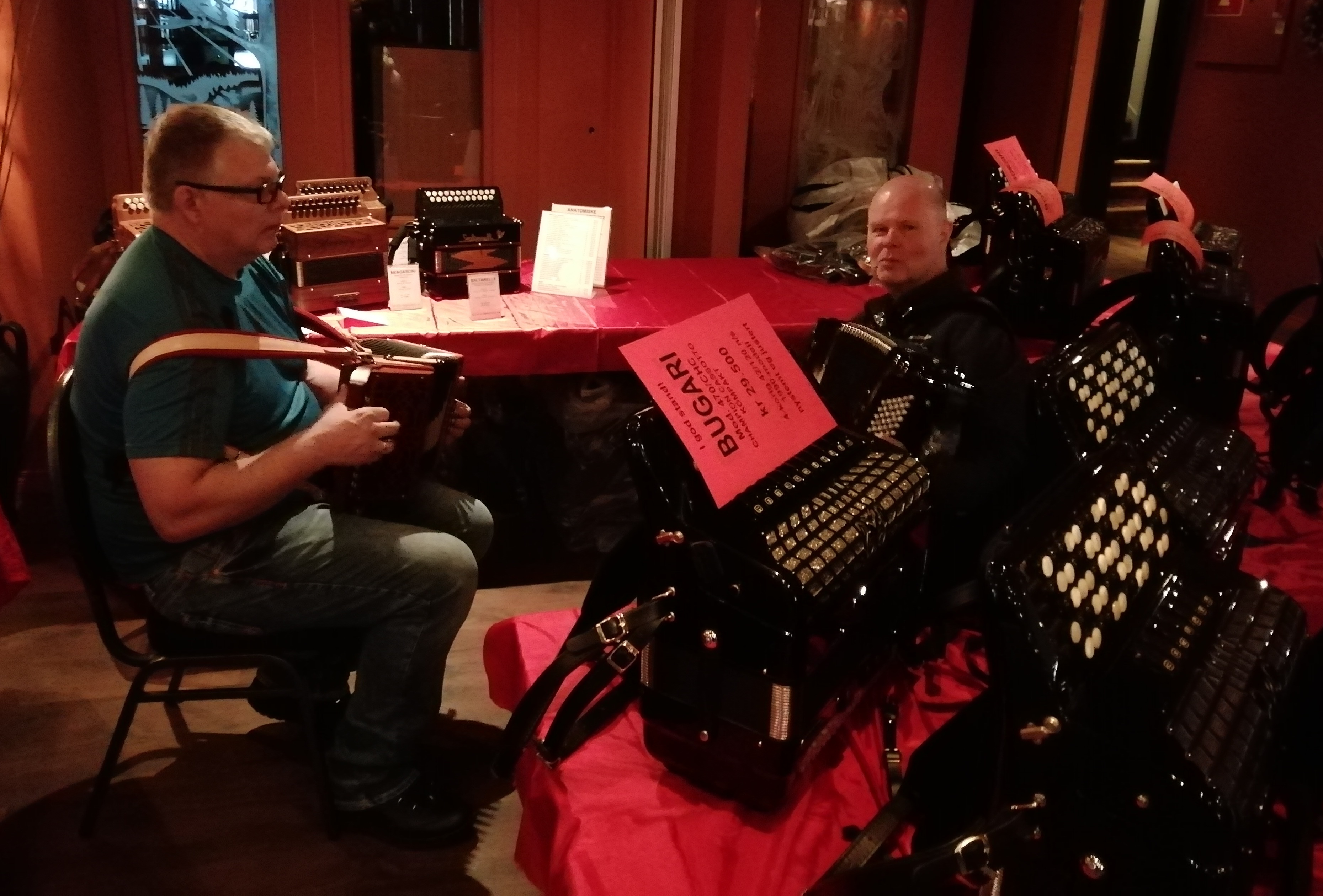 | 'Buskspill' og prøvespilling av instrumenter på salgsutstillingsstanden til 3KKSPILLTROLL |